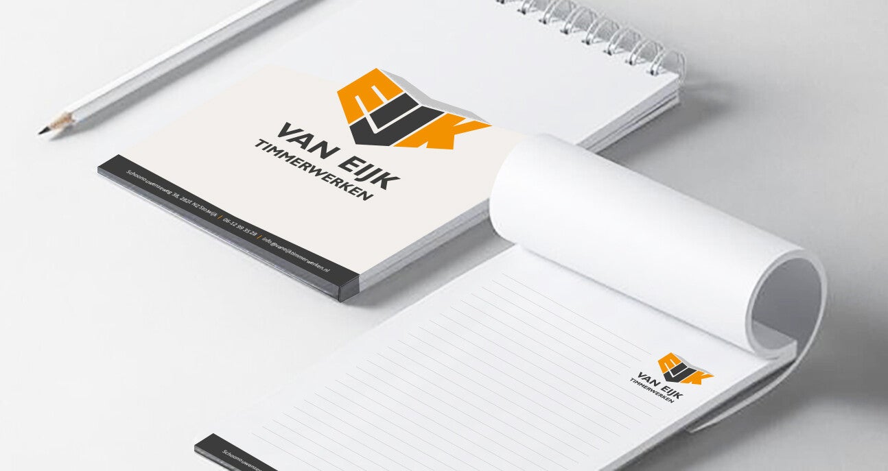 In opdracht van Van Eijk Timmerwerken mocht ik de volgende huisstijlelementen ontwerpen: een logo, visitekaartje, advertentie, notitieblokken, banner en bedrijfsauto belettering. Een mooie uitdaging met een frisse en herkenbare huisstijl als resultaat!